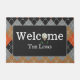 Elevate your entryway with our enchanting orange, brown, and grey argyle design personalised welcome mat, with a fun golf ball on a blue tee replacing the O in Welcome. Dress up your entryway with a golf-themed welcome mat. The perfect gift for the avid golfer, or 19th hole golf course clubhouse.