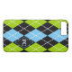 Argyle pattern black, green, blue monogram Case-Mate iPhone case