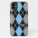 Argyle pattern black, grey blue monogram Case-Mate iPhone case