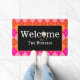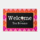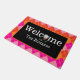 Elevate your entryway with our enchanting pink and orange argyle design personalised welcome mat, with a fun golf ball on a blue tee replacing the O in Welcome. Dress up your entryway with a golf-themed welcome mat. The perfect gift for the avid golfer, or 19th hole golf course clubhouse.