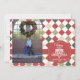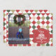 This Christmas / Holiday photo card has a green, red, and white chequerboard argyle plaid design in the background. On the left, you can easily personalise this with your family photo. On the right, there is a frame badge with a typography design that says, "Wishing you a very Merry Christmas" with your family name and year below.