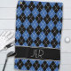 Argyle Plaid Custom Monogram Initials Black Blue Golf Towel