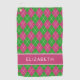Argyle Plaid Pink Green Custom Name Preppy Golf Towel