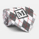 Argyle Plaid Red Grey Silver Custom Monogram Tie