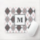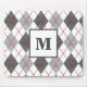 Argyle Plaid Red Grey Silver Monogram Mouse Pad