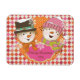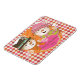 Our Argyle Snowmen Holiday personalised flexi magnet features a snowman couple in top hat, winter hat, striped scarf, and carrot noses on an orange, red, pink, and white argyle pattern background, little polka dots on orange with snowflakes of white, and a pink banner you can easily personalise with a name or other text.