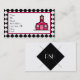 A teacher contact card featuring the logo of The Pink Schoolhouse surrounded by a black and white argyle border with pink accents. Personalise with your own information. Add your own initials to the design on the back. (line 8) Font style, size, and colour may be changed using the editor.