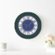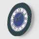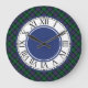Wall clock with a border of the district tartan for Argyll, Scotland. Green, royal blue, and black Scottish plaid pattern with bright red and sky blue highlights. Choose from round or square clock.