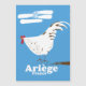 Ariège france, retro travel poster with a hand drawn hen.