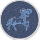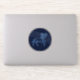 Sticker featuring the symbol for Aries in soft silver blue, overlaid with the stars of the constellation, against a starry sky background graded from deep midnight blue to black