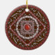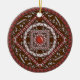 This Aries themed mandala features a red jasper stone surrounded by the symbol for the sign, the constellation, and the alchemical symbol for Fire among filigree and weaves.