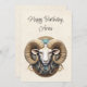 Birthday card for Aries featuring a digitally created image. The greeting can be changed, including substituting a name for the zodiac sign. AI assisted graphic purchased with commercial use. Artwork: DreamCafeArt