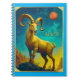 Notebook in a majestic ram standing atop rocky terrain, symbolises the sun sign Aries. Set against a cosmic backdrop with a glowing red planet Mars, the ram's bold horns and intense gaze evoke strength, courage, and a fiery spirit.
