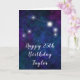 This cosmic and celestial birthday card can be personalised with a name or title such as mum, daughter, granddaughter, niece, friend etc. The design features the Aries zodiac constellation on a dark blue and purple watercolor galaxy background with scattered stars. The text combines handwritten script and modern serif fonts for a stylish and classic look. This is perfect for anyone interested in star signs and astrology.