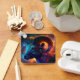 This is an artistic depiction of the zodiac star sign, Aries. The symbol of the ram's portrait is decorated with vibrant colours and abstract patterns, symbolising strength and creativity.