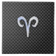 A silver chrome like Aries zodiac symbol on a carbon fibre design texture print background. A modern urban racy design for a great custom birthday gift idea.