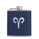 Aries Zodiac Symbol Navy Blue Carbon Fibre Style Hip Flask