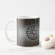 A mug with an image of an Arisaka Model 99 rifle top receiver with its engravings of the Imperial Chrysanthemum and the model number ( written in Japanese ). This was a World War II infantry rifle used by the Japanese Imperial Army. After Japan surrendered, the Chrysanthemum engraving was ground off of most of these rifles.