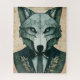 This puzzle features a wolf portrait with a formal dress. This is a great puzzle for puzzle collectors and wolf lovers.