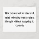 "It is the mark of an educated mind to be able to entertain a thought without accepting it." - Aristotle