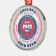 Show your state pride this holiday season with this unique Christmas ornament dedicated to Arizona, the 48th state. It has red, white, and blue patriotic colours with a circular typography design on a white background. The text includes facts about the state, such as its name, capital, state abbreviation, region, time zone, geographic coordinates, the year of its statehood, and its resident's name. It's a great gift for those who wish to celebrate their state or for those who are feeling nostalgic about their home state.