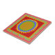 Southwest Del Sol tile, Southwest sun tile, Virginia Vivier, Vagabond Folk Art. Colourful red, orange and yellow colours, Southwest decor, Tribal folk art, indie art, bohemian decor.