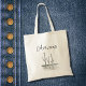 Boho Arizona desert cactus tote bag, with a black and white saguaro cacti design and simple black typography lettering. This tote has a hand drawn design by Indiamoss, and was inspired by the southwest USA and Tucson, Arizona.