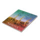 Arizona ceramic tile, with a unique cactus image of three saguaro cacti enjoying the sun near Tucson. With white customisable lettering, you can add your own information. A fun gift from your southwest vacation!