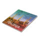 Arizona southwest ceramic tile, with a group of Saguaro Cacti enjoying the afternoon sun. With a vintage look, this item has warm colours of rust and brown with cool blue in the background. With white lettering, you can customise with your own text. A perfect addition to your kitchen home decor!
