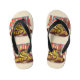 The flip flops arrived in a most colorful package which also had them double bagged in a black drawstring pouch which makes them great for gifting. They are a quality product with plenty of durability. The printing is vivid and true to that pictured on the web. Great look!