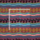 Hand Drawn Kokopelli and Southwest Native American Pattern in plum, gold, and turquoise.