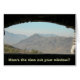 Blank notecard featuring the words, "How's the view over there?" and a photo of a mountain ridge outside of Phoenix, Arizona on the cover.