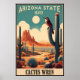 • Embrace the charm of the Southwest with this vintage travel poster featuring Arizona's state bird, the Cactus Wren. Set in a classic desert landscape with iconic cacti, rugged red rock formations, and a bright golden sun, this artwork captures the essence of Arizona's warm, arid beauty. Ideal for desert lovers, bird enthusiasts, and vintage art collectors, this piece brings a touch of southwestern nostalgia to any décor.
