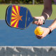 The front of this pickleball paddle shows an image of a the Arizona state flag, in the customary colours of red, gold, orange and blue. The image is placed on a black background with borders of matching stripes. Your monogram is at the bottom. *Note - this is an upcharge for printing the design on the back; if you would like to do this, you may copy and paste the front image to the back by using the Design Tool. If you need assistance, just shoot us an e-mail; we are always happy to help!