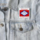 An authentic high quality image of the flag of Arkansas set between the state name and nickname over a flag-colour background.