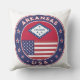 Badge of Arkansas with flag of Arkansas and flag of USA colours, rounded shape.
