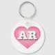 This keychain features a calm, cool, and collected pink heart with a white-washed centre containing the bold, white, upper case letters AR, the official abbreviation for Arkansas, the natural state.