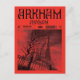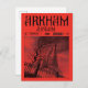 This graphic poster casts Arkham Asylum, the notorious psychiatric hospital from the Batman universe, in a haunting light. The entire scene is bathed in a sinister red hue, enhancing the gothic architecture and barren trees that encircle the asylum, creating a sense of dread and foreboding. The moon glows ominously in the background, illuminating the twisted branches that seem almost to reach out from the darkness. Bold, stylised lettering spells out "ARKHAM ASYLUM" at the top, with a clever tagline "RESTRICTED - Requires Accompanying Hero" that adds a playful yet dark twist to the piece. This artwork brilliantly captures the eerie essence of one of Gotham's most infamous landmarks, making it a striking collectable for fans of the darker side of the Batman saga.