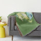 A quality printed throw has its advantages. This is a much finer weave throw than its loopier cousins, and though lighter, it is worth the investment for custom room accessorizing. The back is much prettier than the typical brown, and the fringe on the long sides very vivid, the selvage nicely done. Before photographing, I washed the throw in cold water, delicate, with a thicker woven throw the same size. On tumble dry low, this throw was dry in half the time as the other. This is a very practical quality if you use throws for furniture covers or to wrap up in frequently. The sleekness of the fabric makes it a great layer for accenting or protecting without the feeling of sitting on too much stuff. Perfect for napping or when you feel a light chill coming on. The color printing is beautiful and on this fabric, matched the design and color of my Photoshop image. This is an advantage for blending room fabrics and colors. The fringe on the short sides prints the colors from the design image and therefore varies from the side fringe. I streaked a white fractal line through the plaid pattern to give the illusion of weaving. This printed as crisp as an illusory thread, and put some white in the short side fringe, showing another advantage of print vs loomed- for artistic purposes, line lines, detail, and color integrity can be planned and preserved. My loomed throws have color limitations and more of a needlepoint texture. Print throws reproduce an exact image. The throw felt a little stiff straight out of the package, but this went away in the first delicate wash. Of course I searched the wash water for ink or bleeding and there was none.
