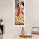 This vintage Art Nouveau advertising poster was designed by Jules Cheret in 1904. It features a woman dressed in a fur lines red coat and floppy hat. This has been digitally restored to remove signs of age and enhance colours