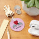 These cute key chains feature an armadillo couple under a heart looking over the word "Love" in a fun font on a light pink background.