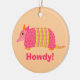 Cute and colourful armadillo on the customisable ornament. Says "Howdy!" but you can change it to your message or delete the text for an image only.