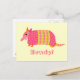 Cute pink and yellow armadillo on postcard. Says Howdy, buy you can customise the message.