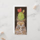 Armando the burrowing owl with prickly pear cactus hat on flat card