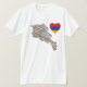 A heart shaped Armenian flag is placed next to a relief map of Armenia on this distinctively patriotic t-shirt.