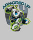 Check out this Omni-Kix Slapback graphic that reads: "Armoured Up"!