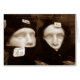 A photo of two Polystyrene heads dressed up for the winter weather at a local Army and Navy store.