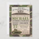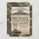 Calling all troops! Invite everyone to participate in your special operation birthday party with a camo army invitation templates. This camo army birthday invitations features military greens and browns camouflage colours with troops and a tank on a modern style invitation design.