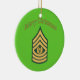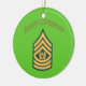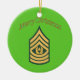 Army Command Sergeant Major Christmas Ornament. This ornament is decorated on one side with the Army Command Sergeant Major insignia and the words "Merry Christmas" and on the other with Santa Claus carrying a bag of goodies.
