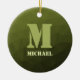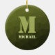 Army green olive geometric mesh pattern Monogram Ceramic Tree Decoration